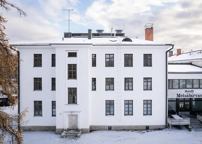 Die Fahrt zum Flughafen Rovaniemi dauert nur 28 Minuten. Bahnhof Hirvas liegt auch in einer Entfernung von 7 Minuten zu Fuß von diesem Metsaehirvas Rovaniemi.